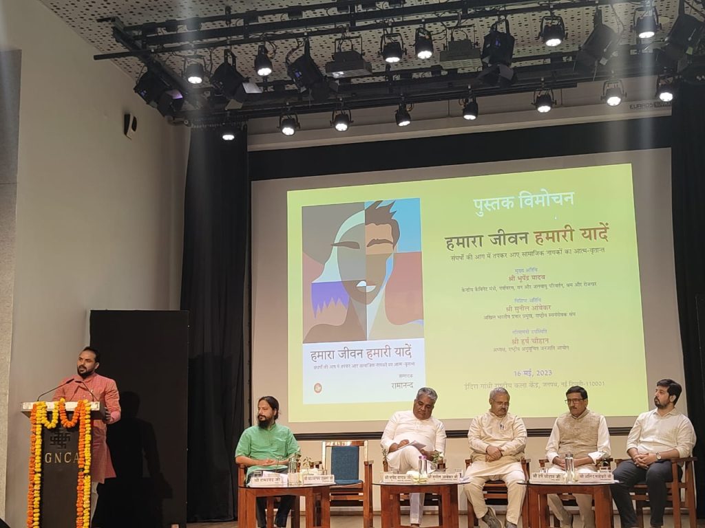 मंगलवार को नई दिल्ली स्थित इंदिरा गांधी राष्ट्रीय कला केंद्र में रामानंद द्वारा संपादित ‘हमारा जीवन हमारी यादें’ पुस्तक का विमोचन केन्द्रीय मंत्री भूपेंद्र यादव, राष्ट्रीय स्वयंसेवक संघ के अखिल भारतीय प्रचार प्रमुख सुनील आंबेकर, राष्ट्रीय अनुसूचित जनजाति आयोग के अध्यक्ष हर्ष चौहान एवं अखिल भारतीय विद्यार्थी परिषद के राष्ट्रीय महामंत्री याज्ञवल्क्य शुक्ल द्वारा किया गया, यह पुस्तक राजकमल प्रकाशन,नई दिल्ली द्वारा प्रकाशित किया गया है।
