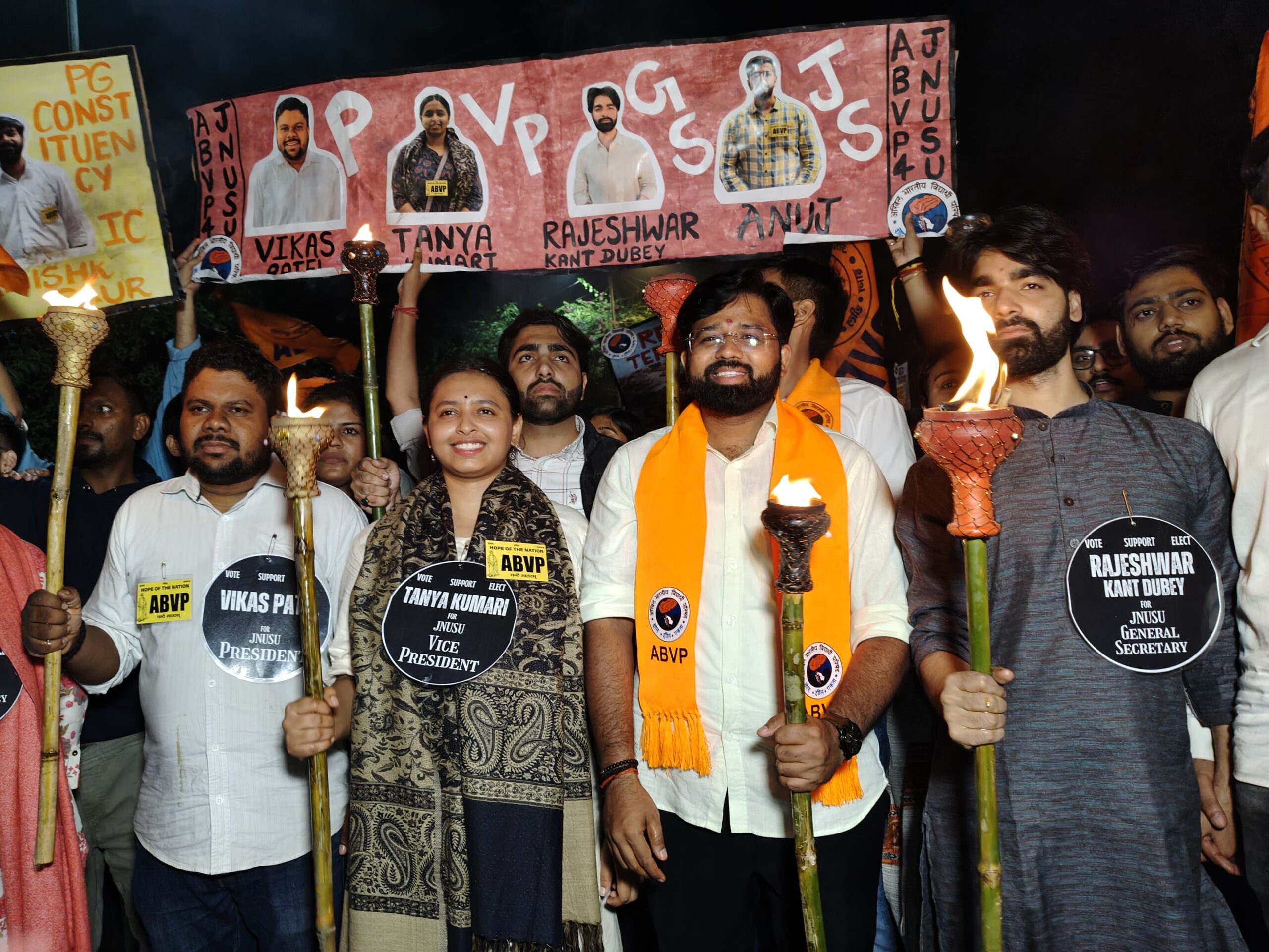 अभाविप जेएनयू के केंद्रीय चुनाव समन्वयक अरुण श्रीवास्तव ने कहा कि अभाविप द्वारा जेएनयू के गंगा ढाबे से लेकर बराक छात्रावास तक विशाल मशाल यात्रा निकाली गई जिसमें बड़ी संख्या में छात्रों ने प्रतिभाग किया। इस मशाल यात्रा में उमड़े हुजूम से पता चल रहा है कि जेएनयू से वामियों का सूपड़ा साफ होने वाला है और विद्यार्थी परिषद जेएनयू छात्रसंघ चुनाव में चारों सीटों पर मजबूती के साथ आ रहा है।